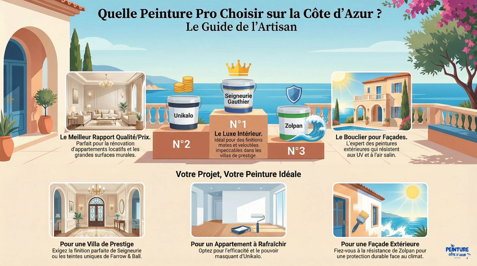 Pas le temps de lire ? Écoutez notre équipe débattre des meilleures marques (Seigneurie, Farrow & Ball) et découvrez celle qui résiste le mieux au climat de la Côte d'Azur.