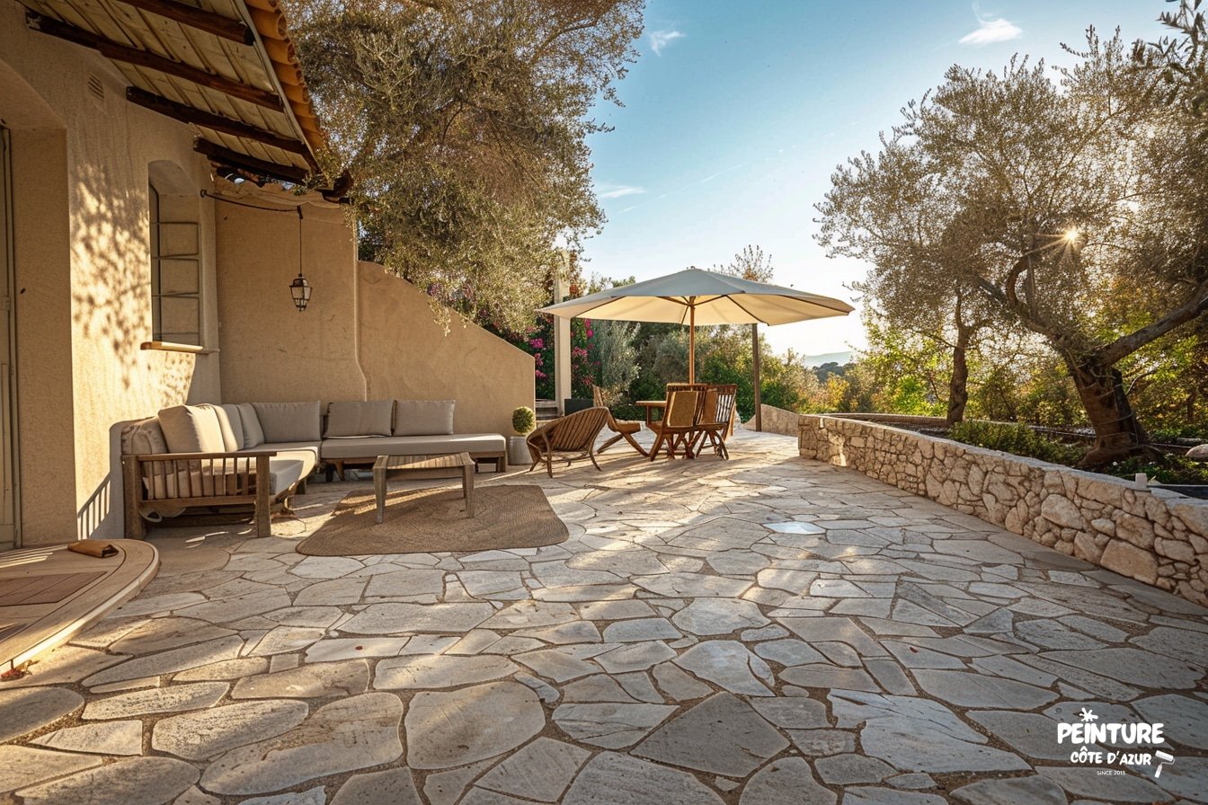 Les teintes mates et naturelles ont été choisies pour moderniser l’espace tout en préservant le charme méditerranéen.